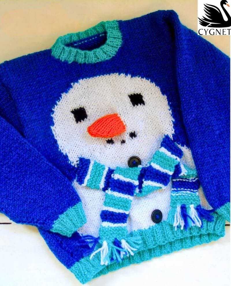 These free PDF patterns from UK brand Cygnet use some discontinued yarns, but you can easily substitute with Cygnet DK (60+ shades) or indeed use any standard DK yarn. The bear and snowman characters are knit with Cygnet Glittery DK for a fancy festive look, which is still available in white (shade 118 icicle).