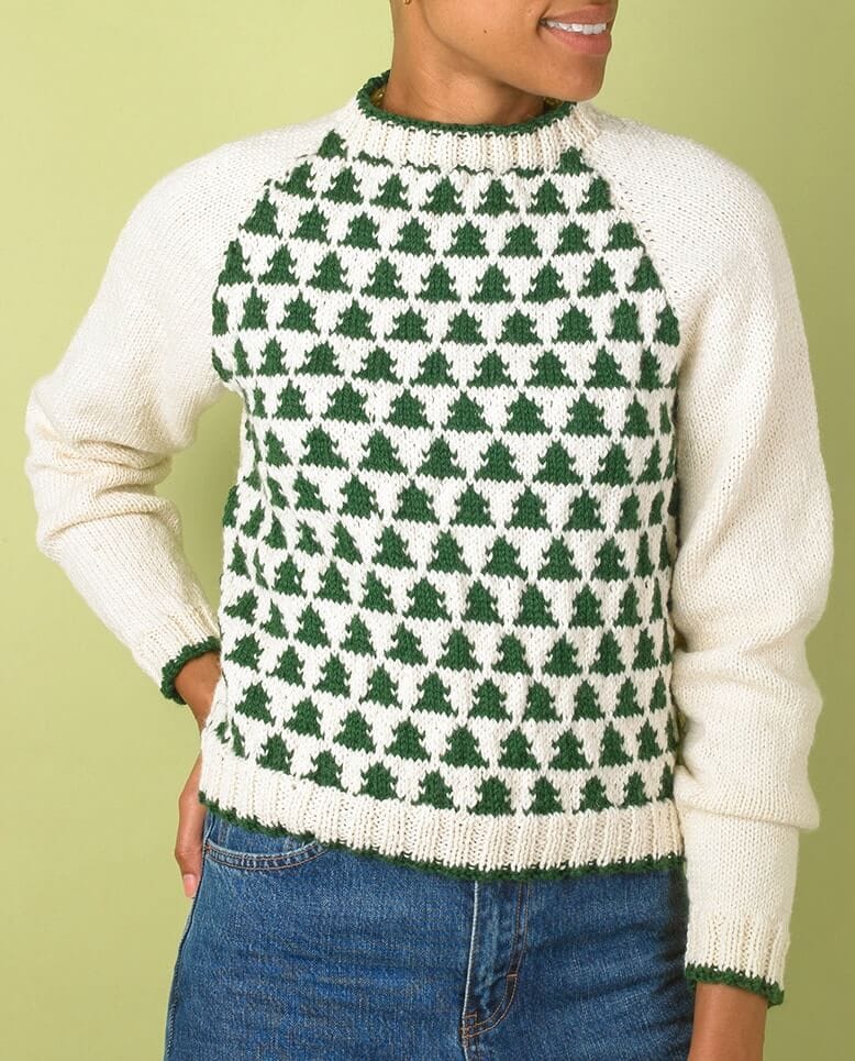 It’s also handy as a vanilla raglan sleeve sweater pattern that you can easily modify with stripes or other intarsia charts – this pattern is forever, not just for Christmas. 🙂