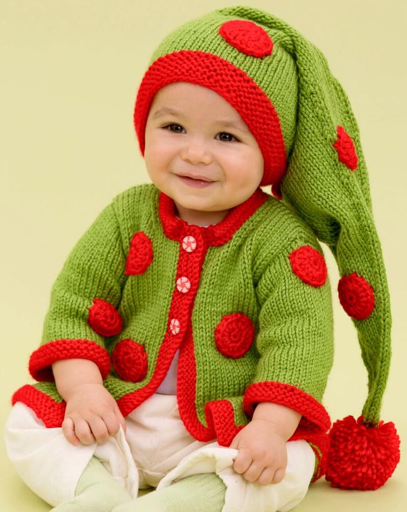 Red Heart have adorable Christmas outfit PDF knitting patterns for babies & toddlers – all free to download without even needing to sign up for anything – yay!