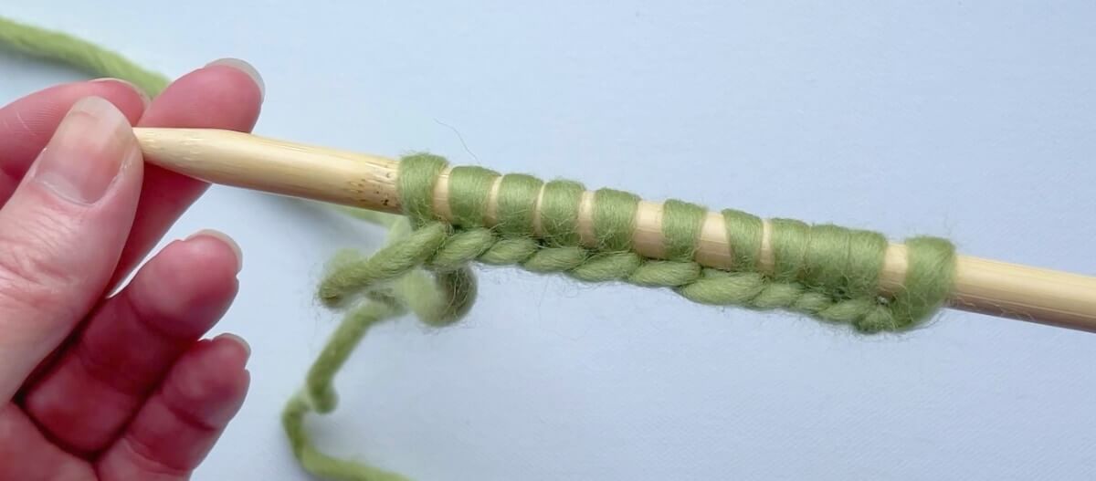 Here’s how the long tail cast on looks when it’s finished. Follow along below to learn how to knit this cast on.