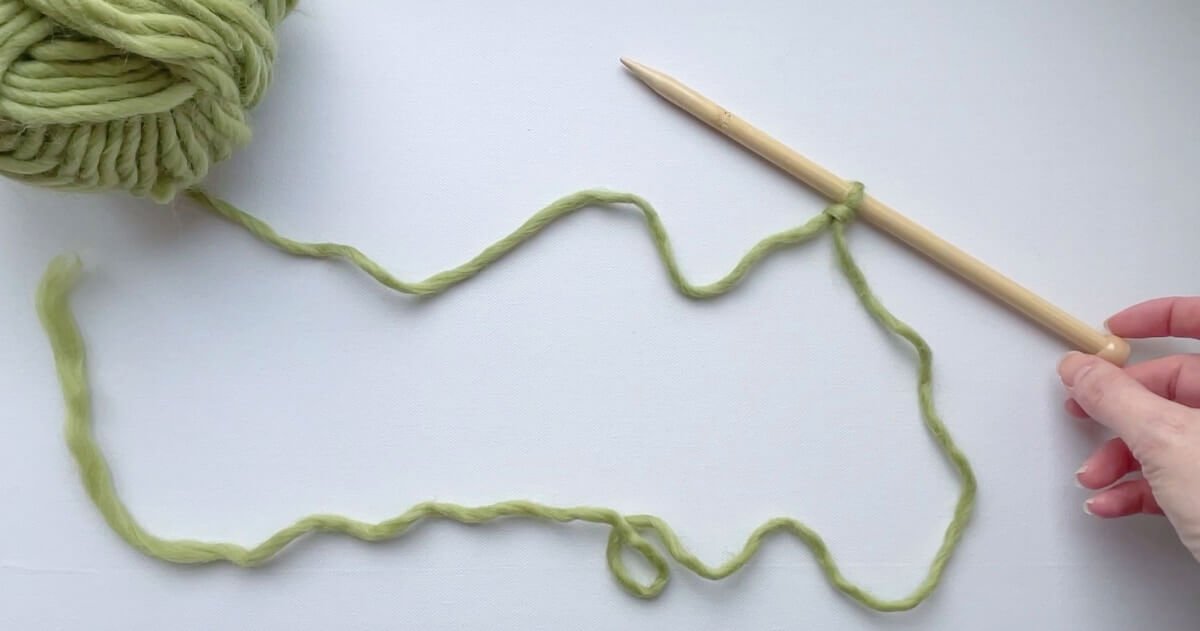 Leave a tail at least 3 times the width of what you’re going to knit. Make a slip knot on your knitting needle and tighten it up.